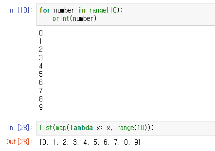 list(map(lambda x: x, range(10))) # python2 & python3 방식